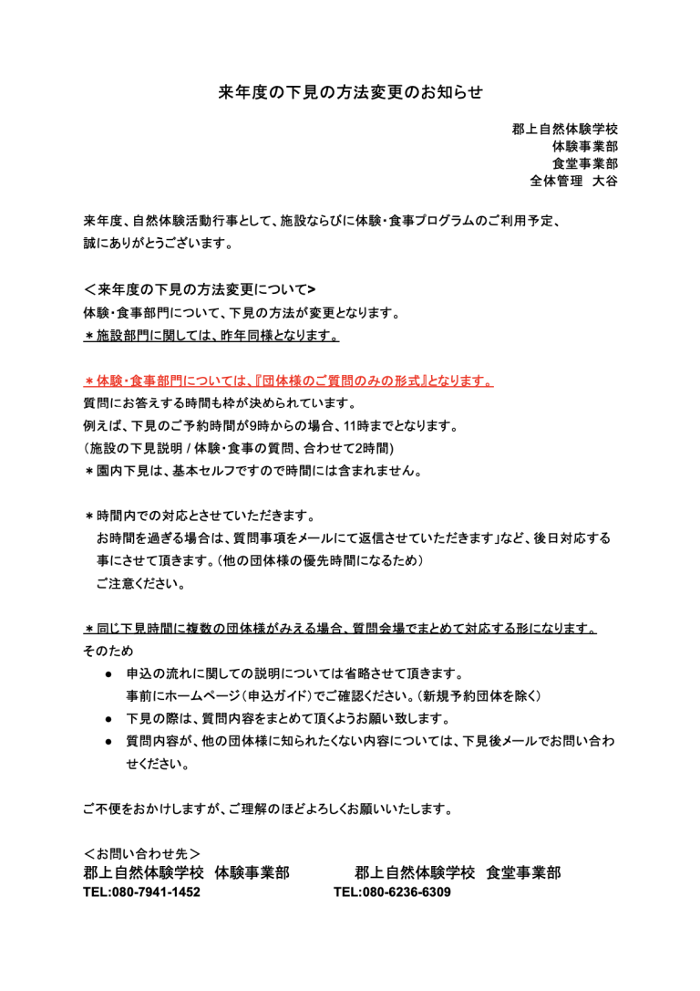 ご迷惑をおかけしますが、ご理解のほどよろしくお願い致します。なおお問い合わせの際はお時間に余裕をもってご連絡お願い致します。